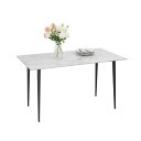 UNHO ダイニングテーブル 食卓 テーブル 4人用 石材×スチール 単品 幅120×奥行70×高さ76cm おしゃれ モダン 大理石風 ホワイト 鏡面仕上げ