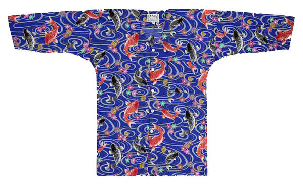 鯉口シャツ<メール便対応>鯉口シャツ 大人用鯉口シャツ【流水に夫婦鯉の青】 w882 【男性女性兼用】 [鯉口 シャツ こいくち 祭 衣装 居酒屋 飲食店 ユニフォーム 男 女 夫婦鯉 流水 青]