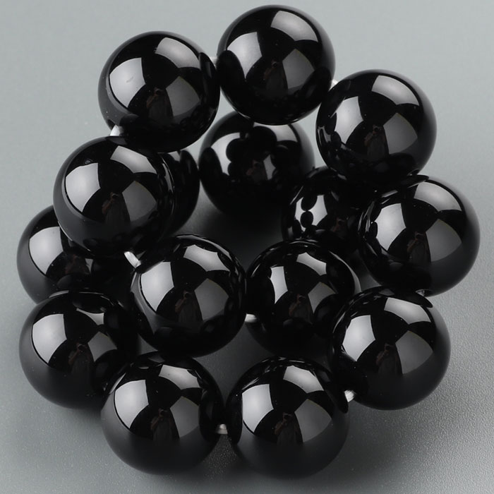 コメント 人気のブラックオニキスのブレスレットでございます。漆黒の黒色の艶が美しく、男女問わず人気のパワーストーンでございます。この他にも、ブラックオニキスのブレスレット、ご準備ございます。 素材 ブラックオニキス(約14mm) 石の効力 ◆ブラックオニキス 古くから「悪霊から身を守る石」とされてきました。現在では悪・災い等から身を守り、妄想や憂鬱を取り除くパワーがあると言われています。また、運動能力を刺激して向上させる力があるとされており、スポーツ選手から人気の天然石です。 邪念を払い、理性や節度を保ちいらいらを静め純粋な気持ちや自分を大切にする事を教えてくれるといわれています。勉学のお守りとしても人気があります。 サイズ プルダウンよりお選びください。 【約15.5センチ】 【約17センチ】 ※上記以外のサイズをご希望の場合はご注文前にお問合せ下さい。 中糸 シリコンゴムを4重に通しております。 繊維を織り込んだ伸縮性のあるゴムです。従来の1重ゴムの数倍の耐久性が御座います。 ※注意点※お風呂や水泳など運動時に身に着けていると、手の動きや水分によりゴムの劣化が早く進んでしまう可能性があります。 付属品 オリジナル保存袋 掲載写真 ※掲載写真はお届けの商品とイメージが異ならないよう、都度、細心の注意を払い更新しております。この商品は模様・色合い等に変化が少ない為、現品写真ではございません。 ※現品写真ご希望のお客様は「現品写真メールサービス」をご利用下さい。