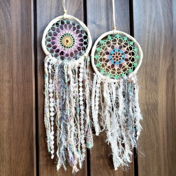 【当店オススメ】ドリームキャッチャー ガーランド ガーリー お守り 幸運 インディアン 引き揃え ファンシーヤーン ロンハーマン 魔除け チュールリボン パステル