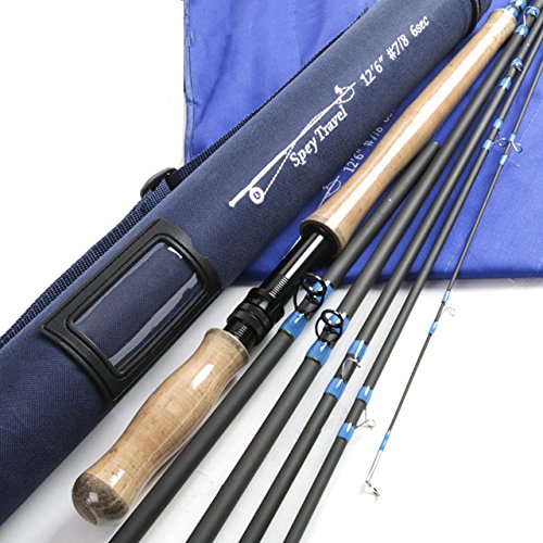 ・12ft ,6インチ,7/8ウェイト, 6ピースSpeyフライロッド・100% IM10ロッドより軽くて、より強くする・AA グレード コルク グリップ鋳造精度に役立ちます・最大のアクションの感触・耐久性のあるcorduraロッドチューブと布のバッグとともに