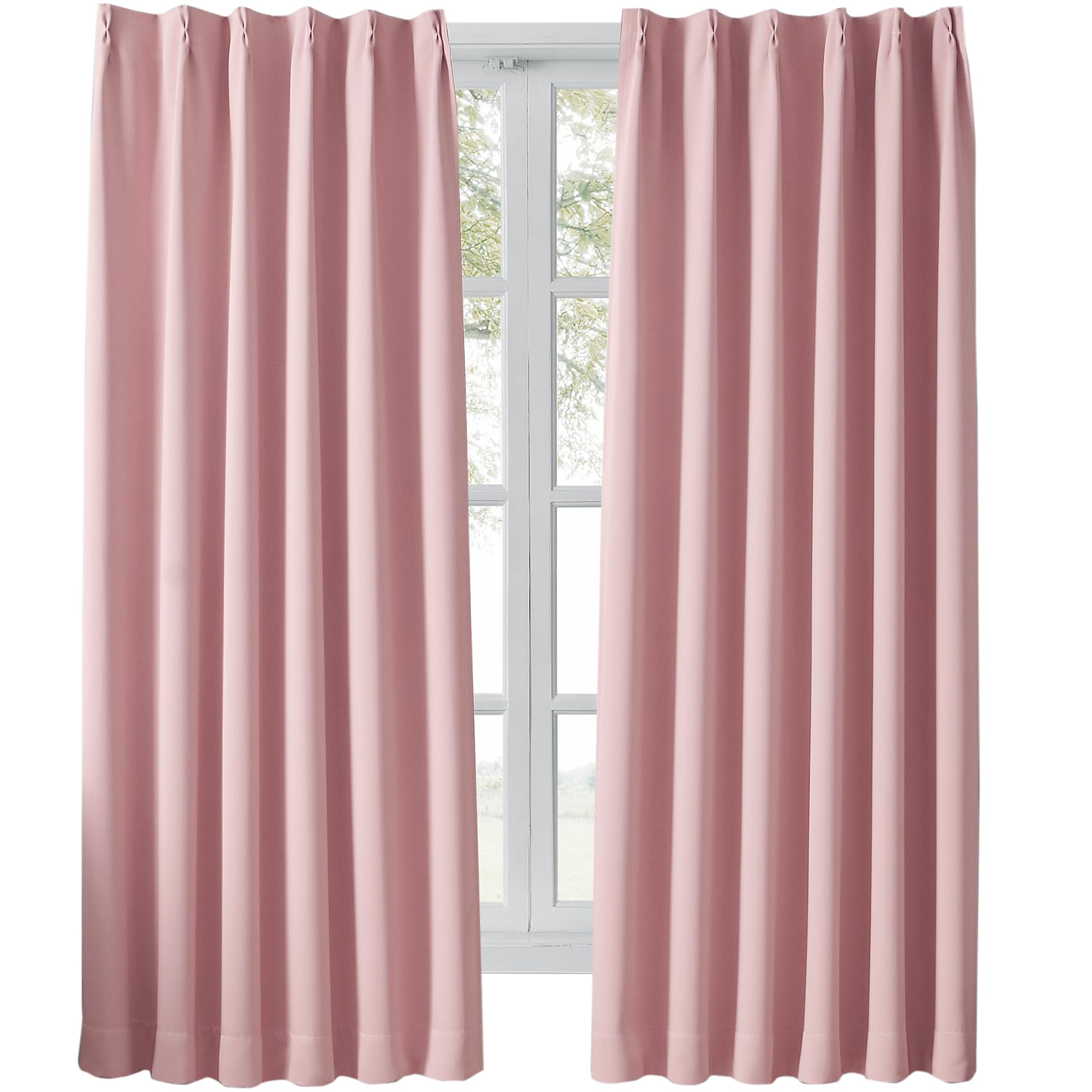 Hansleep カーテン 1級遮光 2枚組 コーラルピンク かーてん 幅100cm丈178cm 小窓 断熱 防寒 防音 省エネ 厚手 無地 おしゃれ 洗える 寝室 リビング用 (コーラルピンク, 幅100cm×丈178cm)