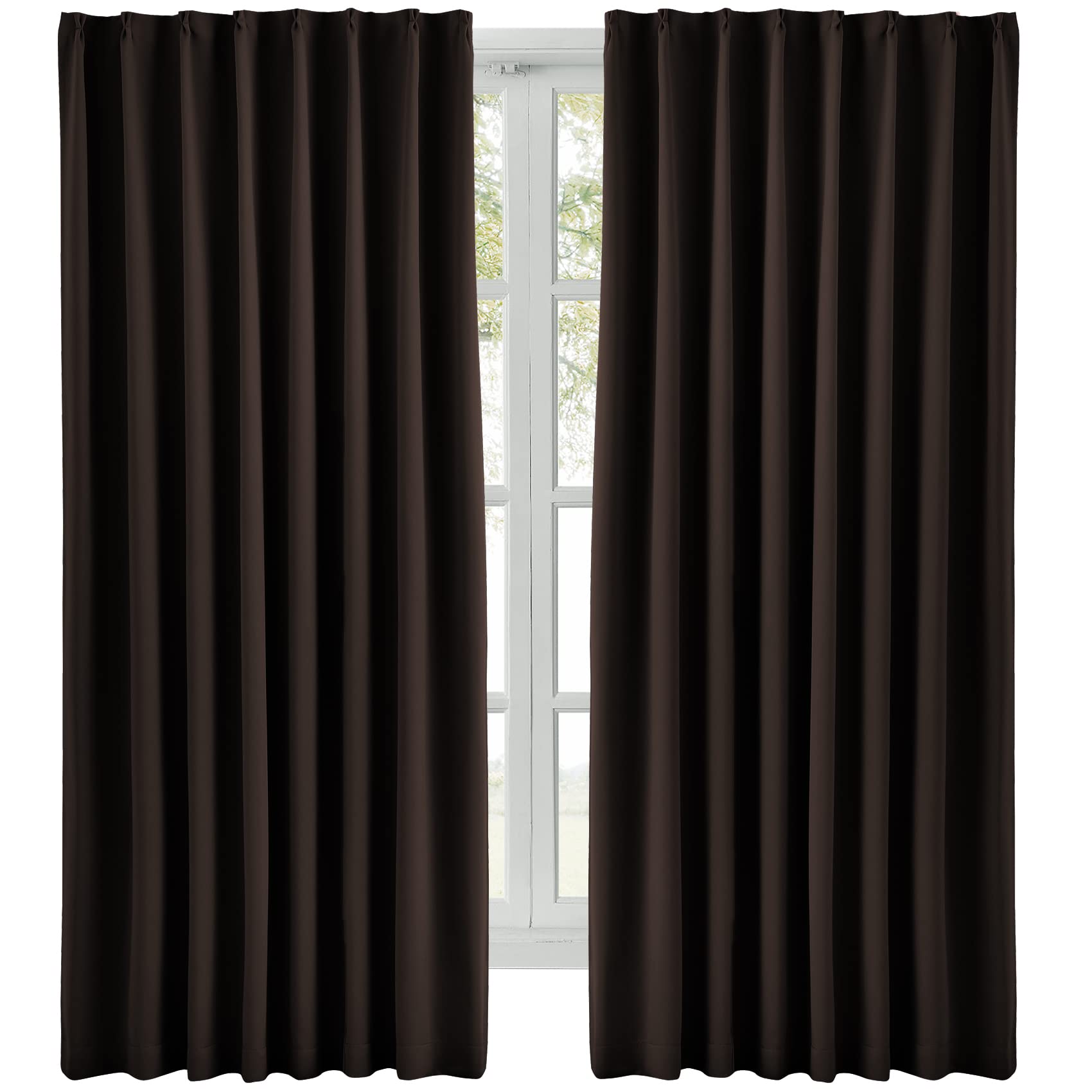 Hansleep カーテン 1級遮光 2枚組 幅150cm丈210cm ブラウン 断熱 防寒 防音 省エネ 厚手 無地 おしゃれ 洗える リビング用 (ブラウン, 幅150cm×丈210cm)