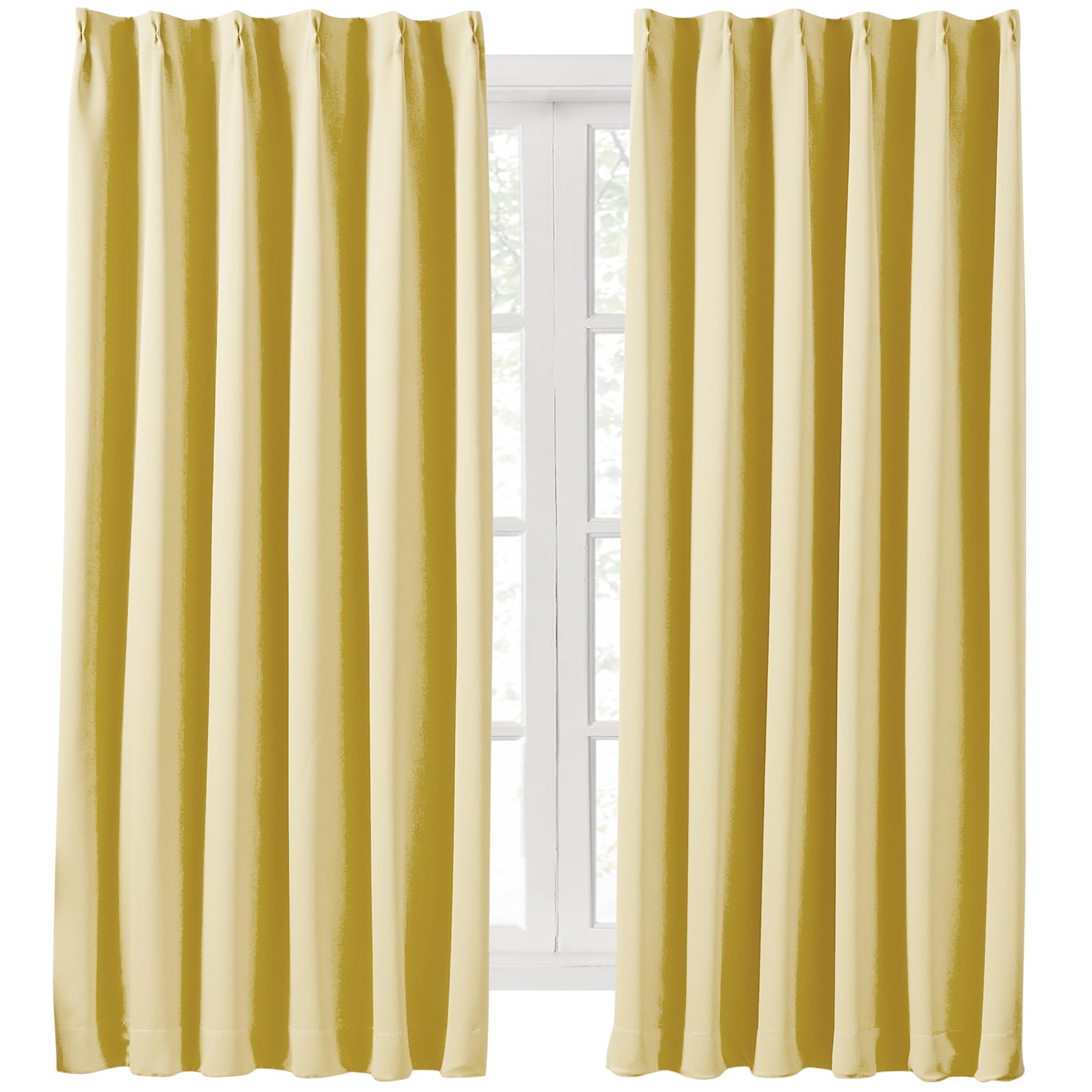 Hansleep カーテン 1級遮光 2枚組 幅100cm丈210cm イェロー 断熱 防寒 防音 省エネ 厚手 無地 おしゃれ 洗える リビング用 (イェロー, 幅100cm×丈210cm)