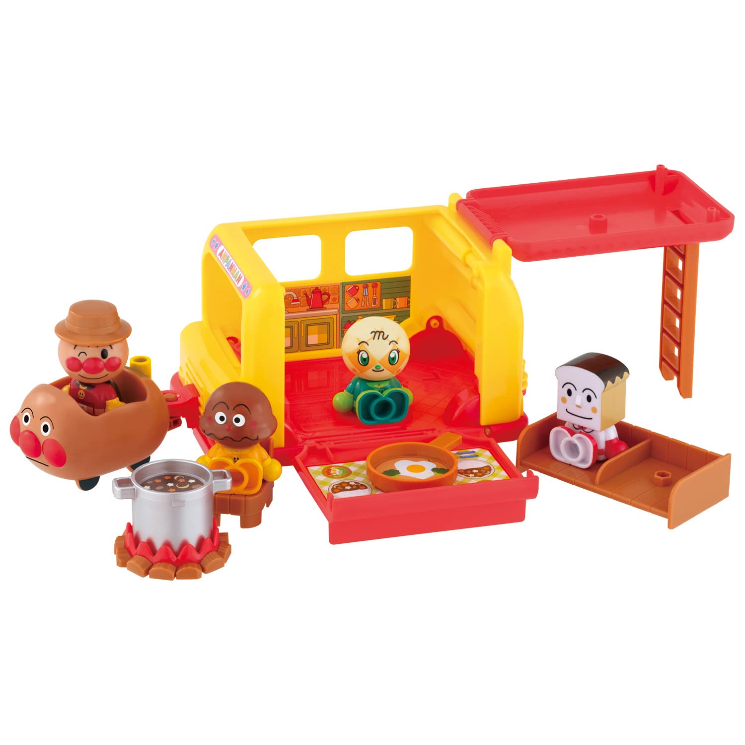 アンパンマンはじめてハウスドールセット わくわくキャンピングカー(対象年齢:2歳以上)アンパンマンはじめてハウスの連動商品、「アンパンマンはじめてハウスドールセット わくわくキャンピングカー」が登場アンパンマンや人気のなかまたちのドールが4体とキャンピングカーのセットです。キャンピングカーは広げて遊ぶことも付属の小物でカレーづくりやキャンプファイヤーなどが楽しめます。ドールは別売りの「アンパンマン はじめてハウス」と連動していて、遊びの幅が広がります。(c)やなせたかし/フレーベル館・TMS・NTV