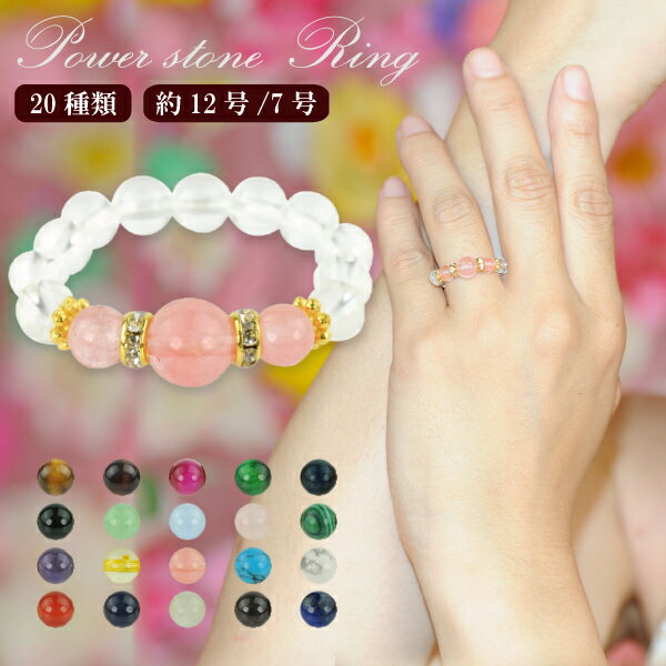 【メール便対応】パワーストーン リング 天然石 リング 指輪 約12号/約7号 4mm玉×6mm玉 20種類【ターコイズ ホワイトバッファロー レッドアゲート ガーネット ラピスラズリ レッドタイガーアイ アクアマリン ローズクォーツ マラカイト アメジスト】 ┃