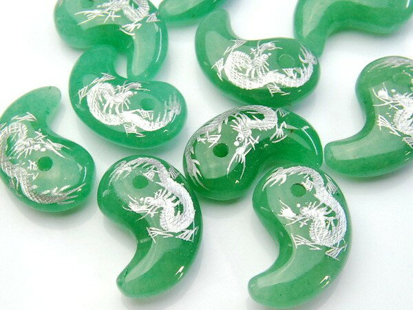 【1粒売り】勾玉 バラ売り ビーズ 天然石 パワーストーン 【銀】彫青龍 アベンチュリン 30x20mm [R1016]