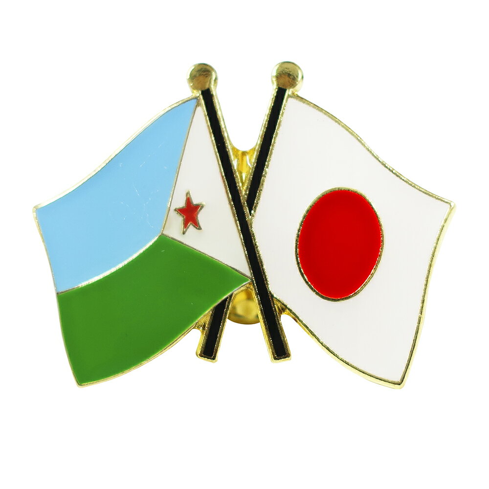TOSPA ピンバッジ2ヶ国友好 日本国旗 ジブチ国旗 約20×20mm