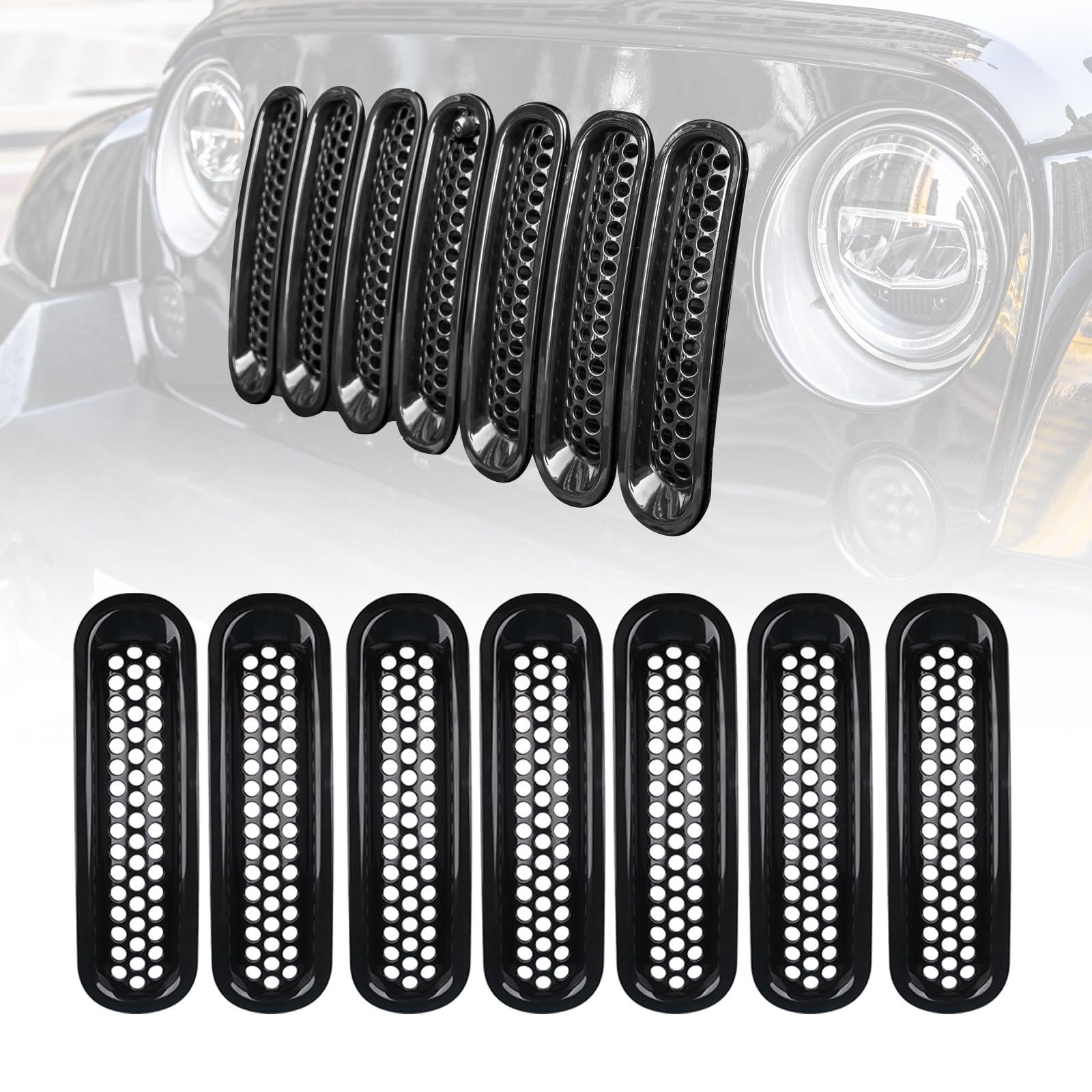 Vancroser ラングラー JKフロントグリル メッシュ グリルカバー グリルインサート フロントグリルドレスアップパネル ラングラー JK 2007-2017対応 7枚セット( ブラック )