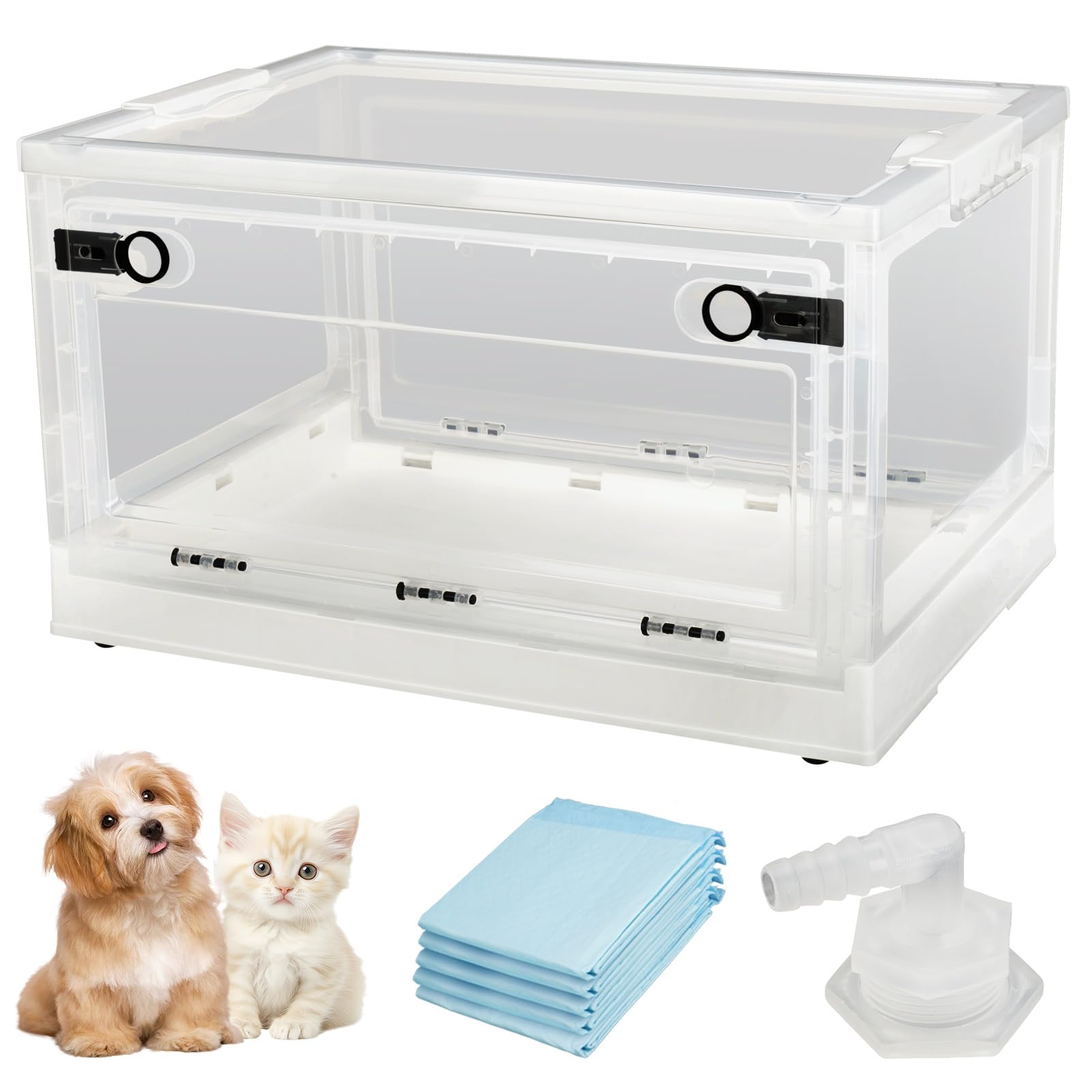 aleawol ペット酸素室 56L 透明 折りたたみ式 酸素ハウス 酸素バルブ キャスター付き 移動が簡単 通気性が良い 酸素 ケージ 9kg以下小型犬 猫 小動物用(50x35.5x28.5cm,日本語説明書)