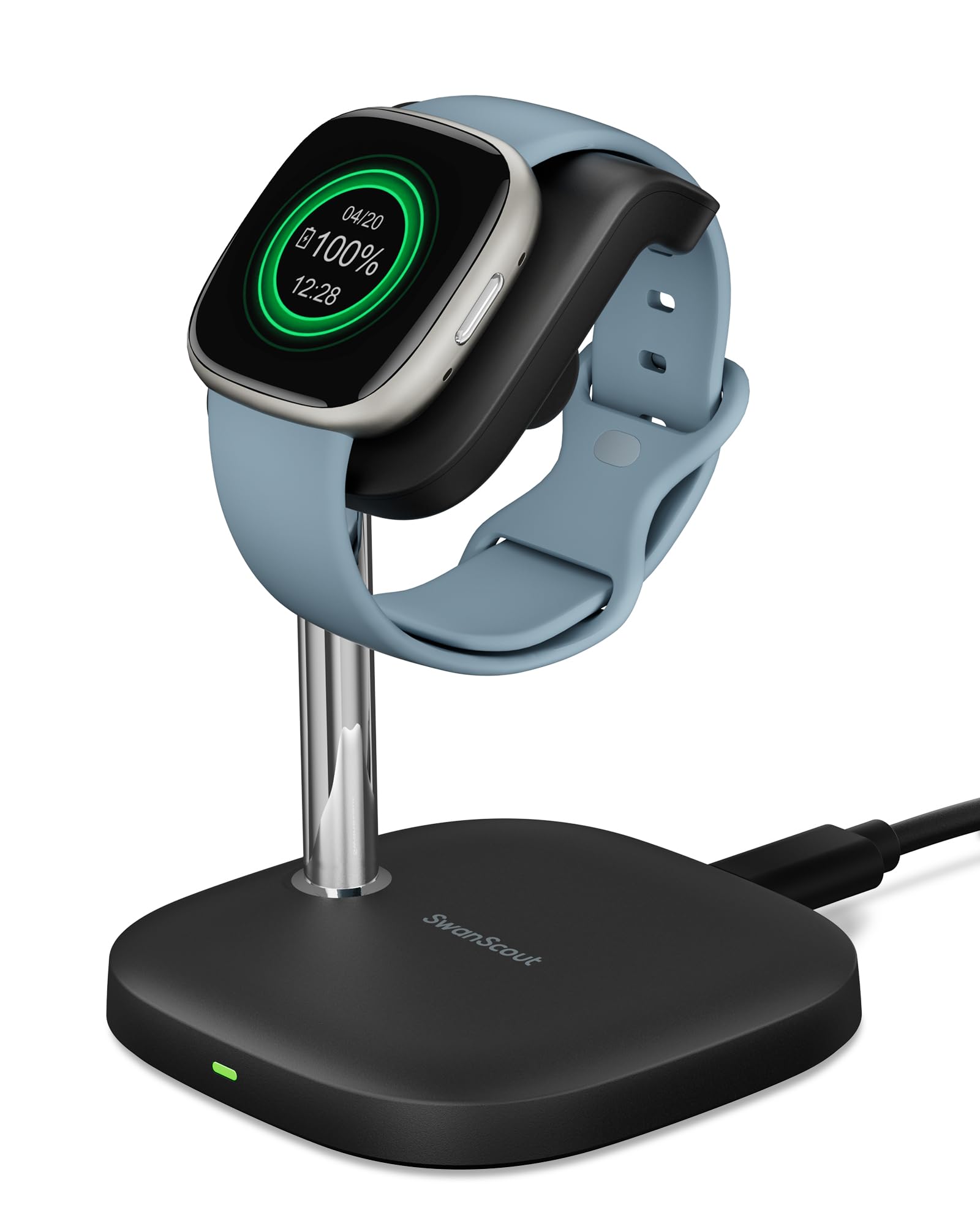 Fitbit Versa 4/3 充電器、Fitbit Sense 充電器 スタンド、角度調整可能 急速 軽量、Fitbit Versa 4/3、Fitbit Sense/2対応、SwanScout 505FB