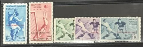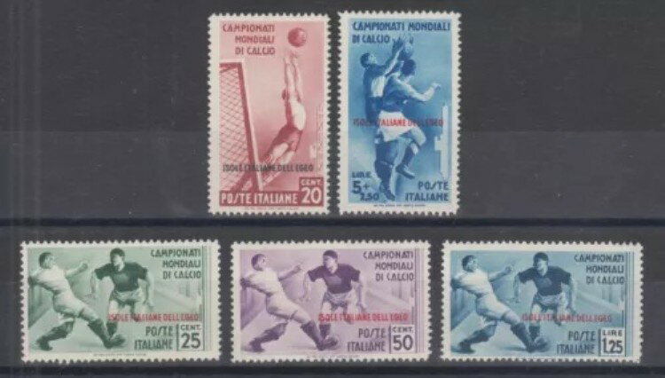 イタリア、エーゲ海諸島 Sc 31-35 MLH。1934年イタリアサッカー問題、cpltセット、新鮮
