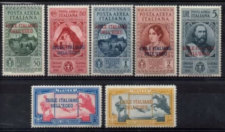 1932 エーゲ海、ピスコピ、ガリバルディ、n. 17/26、10 値、MNH**-