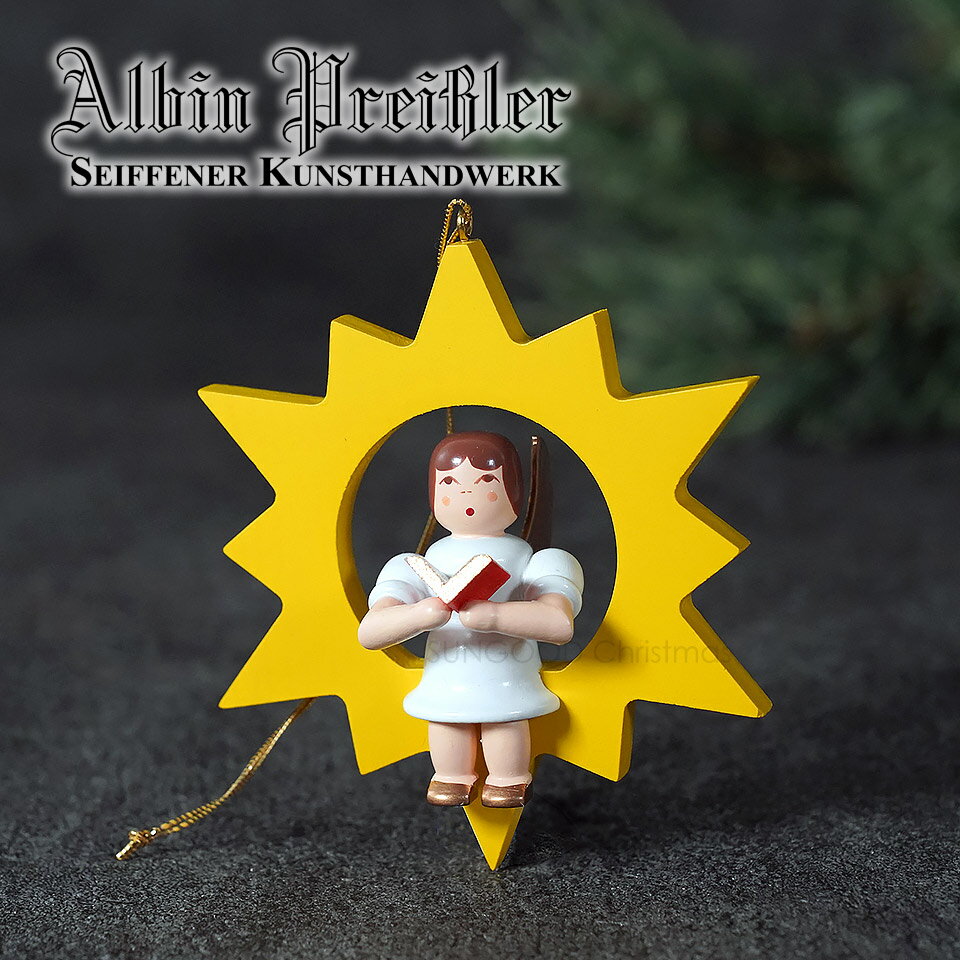 [140030]199/010/1 クリスマス オーナメント アルビン・プライスラー Albin Preissler 星にすわって読書する天使 R ドイツ 木製 ハンドメイド 職人がひとつひとつ丁寧に作り上げた銘品[正規取扱店ピカキュウhome]ドイツ【EAN: 4250770403624】 ピカキュウホーム
