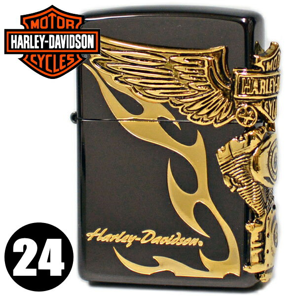 ZIPPO ハーレーダビッドソン HDP-24 サイドメタル ブラックベース&ゴールドメタル ジッポー ライター かっこいい オイルライターメンズ ギフト 在庫あり
