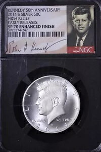 BU 2014-S ケネディ シルバー ハイレリーフ ハーフダラー NGC SP70 強化された無料 S/H ACK