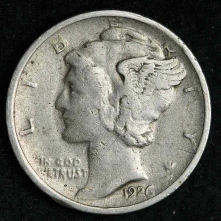 1926-D マーキュリー シルバー ダイム チョイス AU E233 ACK