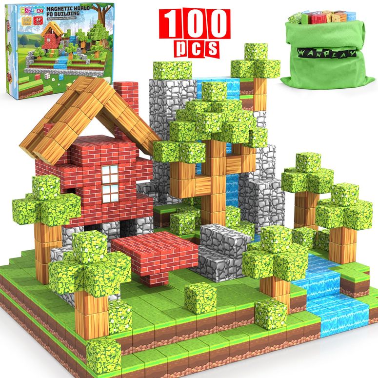 マイクラ おもちゃ ender dragon Wanplay Magnetic Blocks, 100PCS Magnetic Building Blocks for Kids, Build Mine Magnet World Set STEM Montessori Sensory Cubes for Toddlers, Magnetic Birthday Gift Toys for Aged 3-12 Boys & Girls 【並行輸入品】