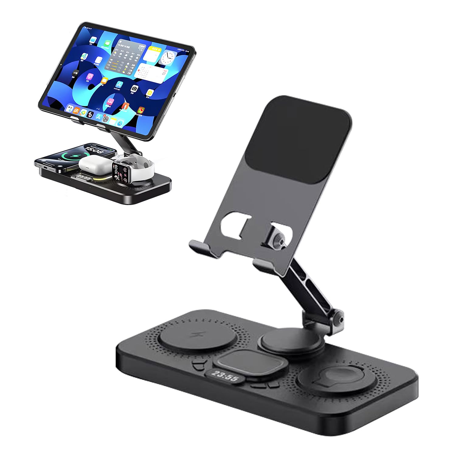 【2025新登場】4in1 ワイヤレス充電スタンド 折りたたみ式 高さ角度調整可 iPhone16/15/14/13/Proシリーズ対応 Apple Watch SE/Ultra/10/9/8/7/6、AirPods Pro/4/3/2 対応 iPad用3