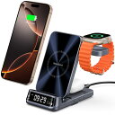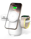 ・【2倍速いQI2急速充電】最新のQI2ワイヤレス技術により、iPhone・Apple Watch・AirPodsを同時に高速充電可能。待ち時間を大幅に短縮し、快適な充電体験を提供します。・【幅広い互換性 & MagSafe対応】iPhone 8からiPhone 16シリーズまで対応。iPhone 8・Xをご使用の場合は、MagSafe対応ケースを装着することで最適な充電が可能です。・【iOS 18/17 スタンバイモード対応】iPhoneを横向きに設置するだけでスタンバイモードが起動。充電中でも美しく便利なディスプレイスタンドとして活用できます。・【Apple Watch 5W急速充電】Apple Watch(S9/Ultra 2/Ultra/S8/S7)を約1時間でフル充電。短時間で効率よく充電でき、外出前の準備もスムーズに。・【強力マグネット吸着 & 軽量耐久デザイン】800gの磁力を持つ8個のネオジム磁石とアルミ合金回転軸で安定固定。Pro Maxシリーズも縦横自在に保持可能。わずか140gの超軽量設計で、環境に優しい素材と高い耐久性を両立。製品説明 3in1 ワイヤレス充電器は、iPhone 16/15/14/13/12 シリーズ、MagSafe対応ケース付き AirPods、Apple Watch に対応した便利な三合一充電スタンドです。 マグネット吸着で簡単セット 強力なマグネット吸着で iPhone を載せるだけで充電開始。ケーブルの煩わしさから解放され、スムーズに使えます。 3段階出力:15W・5W・5W スマホ・イヤホン・ウォッチを同時充電可能。効率よく、待ち時間を短縮します。 多重保護で安全充電 過充電防止・過熱防止・異物検知・過電流防止・短絡保護などを搭載し、毎日の充電を安全にサポートします。 安定感あるベース シリコン滑り止め加工の強化ベースでしっかり固定。デスクでもベッドサイドでも安定して使用できます。 縦置き・横置きの角度調整 自由に角度調整ができ、充電しながらの動画視聴やライブ配信も快適。スタンドとしても活躍します。 デザイン性と機能性を兼ね備えたこの 3in1 ワイヤレス充電器で、スマートな充電ライフを始めましょう。
