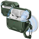 ESR AirPods Proケース(2023/2022/2019、第2/1世代)専用、AirPods Pro第2世代(USB-C/Lightningケーブル)対応、MagSafe、落下防止ロック、イージーオープン、Cyberシリーズ、暗グリーン