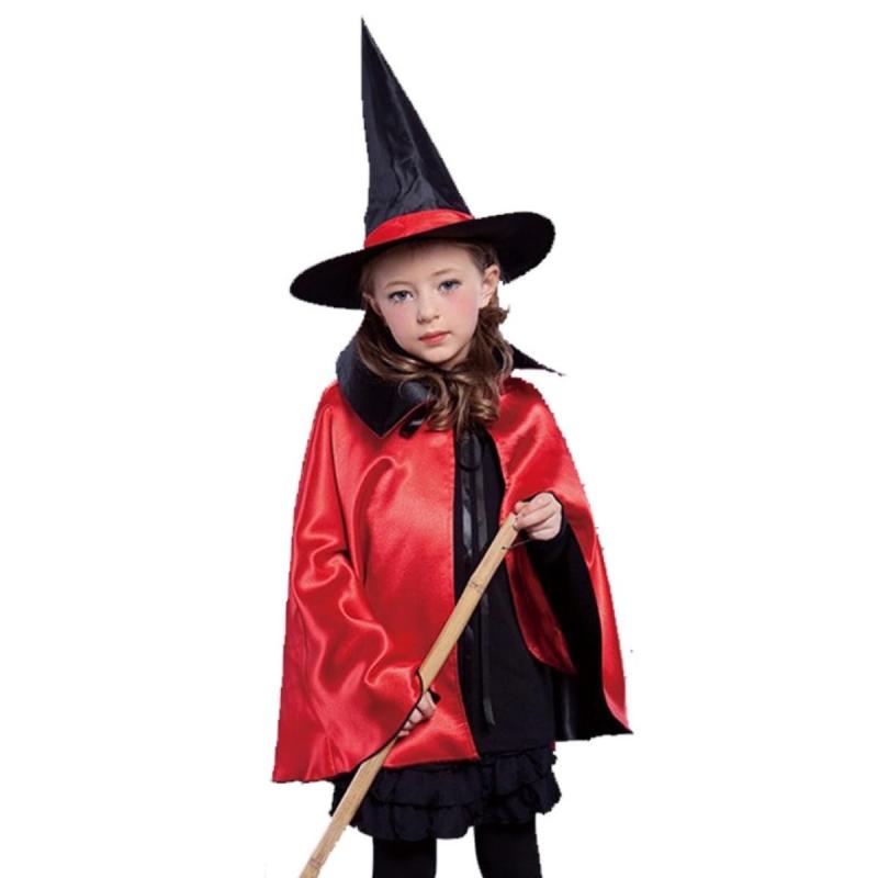 [Diamant S.T.A] ハロウィン コスプレ 子供 魔女 仮装 リバーシブル マント とんがり帽子 2点セット 男の子 女の子 (黒×赤)