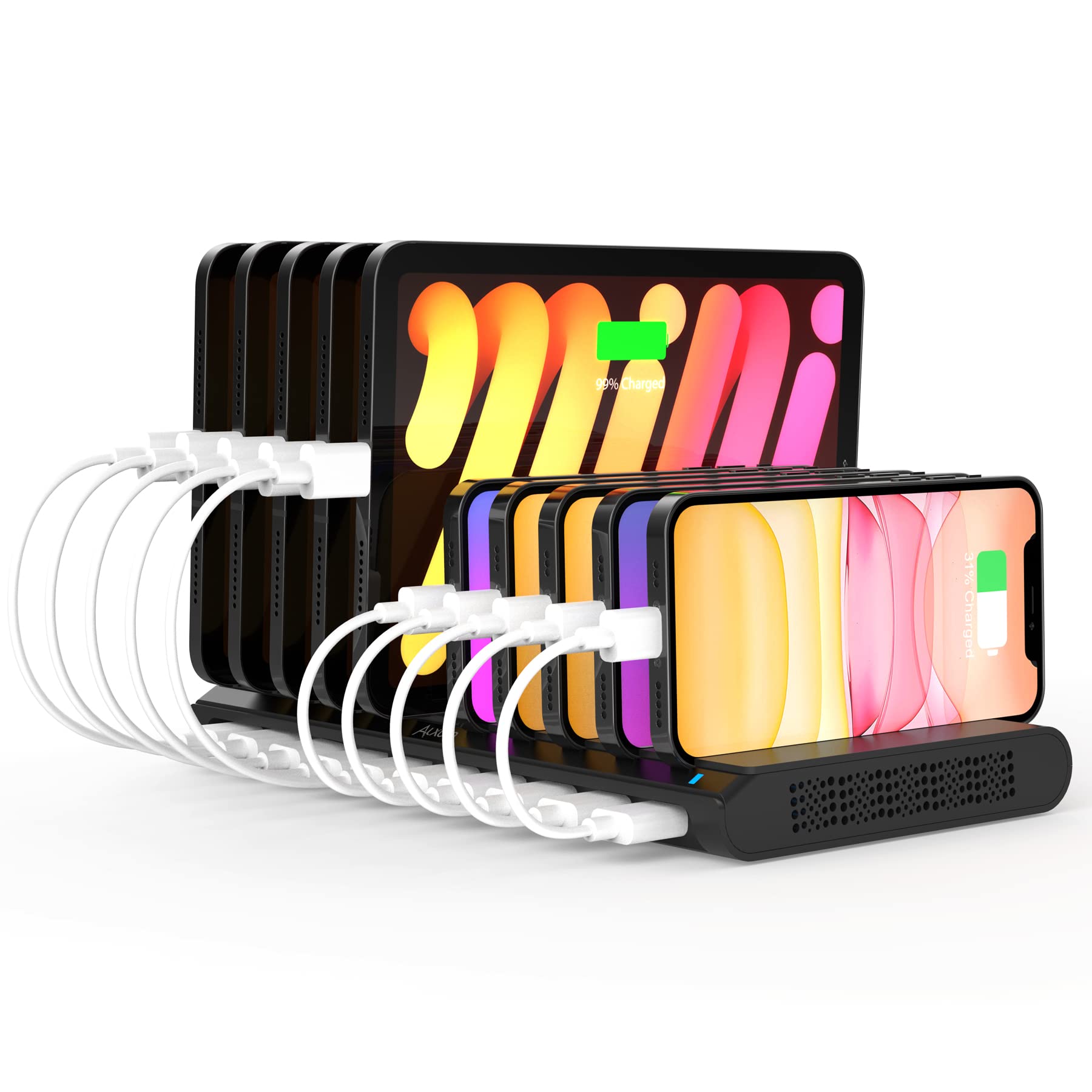 Alxum USB充電ステーション 10ポート 60W スマホ タブレット充電スタンド 充電収納ステーション PSE認証済 10台同時充電 急速充電 仕切り板調整可能iPhone/iPad/iPod/Androidに対応ブラック