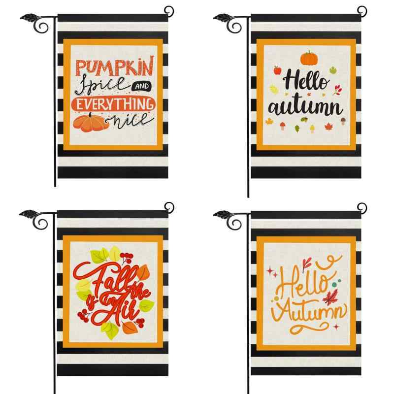 ガーデンフラッグ 秋 ハロウィン カボチャ ストライプ柄 両面プリント ポリエステル 麻風 庭 玄関 ベランダ 屋外用 デコレーション 季節飾り イベント用(x2)
