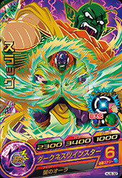 HJ8-30 バビディ 1800 2300 2000 パワードレイン 必殺技発動時、敵に与えるダメージをアップできる。超バーストすると、攻撃した敵のパワーを1000奪う。[毎回] ビリビリの魔術 6 闇のオーラ バトル開始時、敵チーム全員のHP回復効果と、サポーターにした時の気力回復量を半減する。 混乱暗示ユニット 敵チーム全員のチャージインパクトスピードをランダムにする。[1ラウンド限り] 4