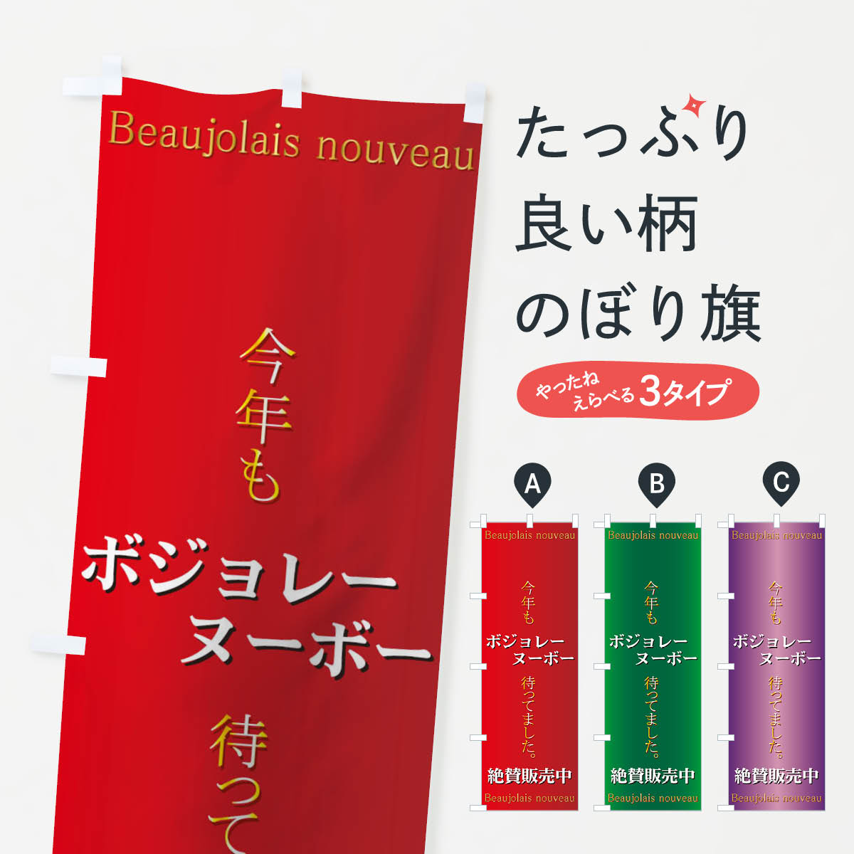 【11/20は全品P10倍】 スリム のぼり旗 ボジョレ・ヌヴォー3 ワイン 既製品のぼり 納期ご相談ください 450mm幅