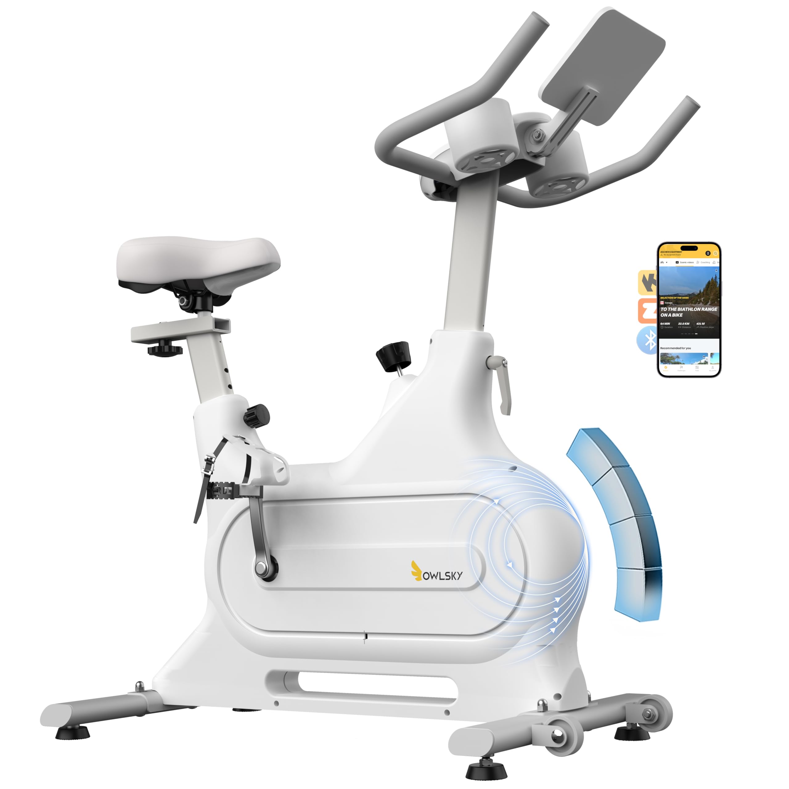 OWLSKY フィットネスバイク スピンバイク エアロバイク【アプリ連動/Zwift対応/静音マグネット式】無段階負荷調整 自宅トレーニング ダイエット器具 家庭用 室内バイク 連続120分対応 組立簡単 移動便利 大人からシニアまで 家族で使える (ホワ