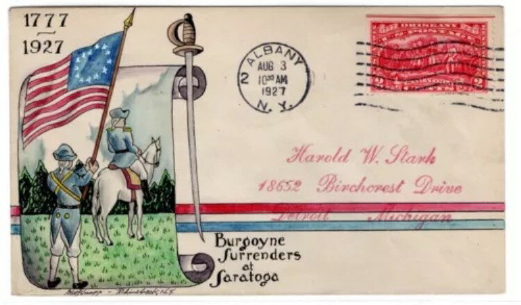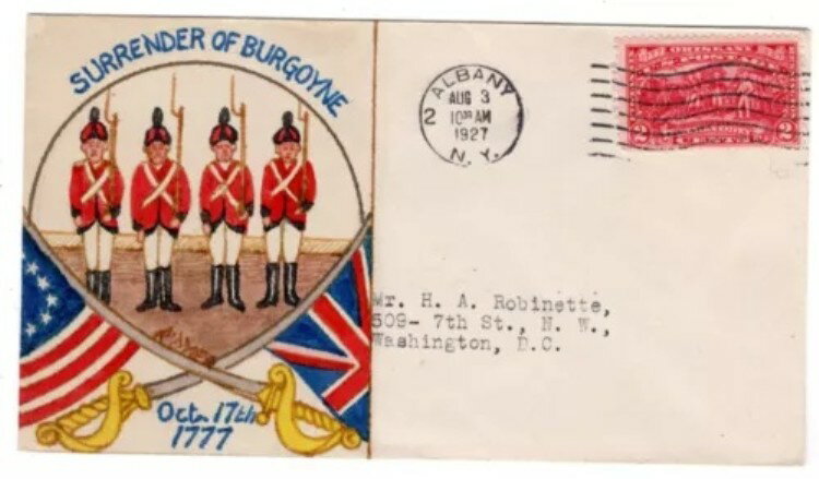 #644 バーゴイン 1927 FDC ラルフ・ダイアー 手描き - ニューヨーク州アルバニー 希少