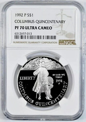 1992年 P コロンバス シルバー 1ドル NGC PF70??完璧な品質??