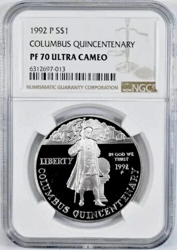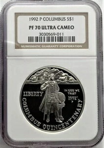 1992年 P コロンバス シルバー 1ドル NGC PF70??完璧な品質!??