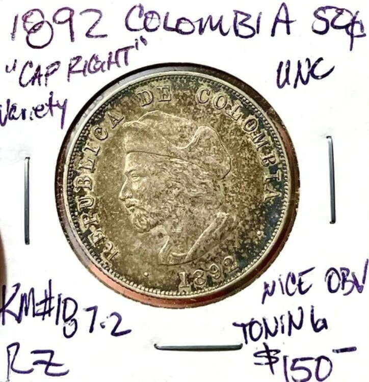 1892 Colombia Columbus Silver 50c “Cap Right” Variety Uncirculated Nice Toning商品について1892年材質:銀流通/非流通:非流通製造国/地域:コロンビア額面:50センターボ純度:0.835KM番号:187.2認証:未認証注意事項※以下の注意事項をご理解のうえ、ご購入ください■ 鑑定済みコイン・紙幣について各種コイン・紙幣の鑑定機関(NGC、PCGS、PMGなど)は、収集品の真贋鑑定およびグレーディングを行う専門機関です。鑑定後の商品は、専用ケース(スラブ)に封入され、状態を示すグレードが付与されます。■ グレードについてグレードはコイン・紙幣自体の状態を評価するものであり、ケース自体の品質や状態を保証するものではありません。製造・輸送時の影響により、以下のような状態が発生する場合がございます。- 軽微なスレ傷・拭き傷(特に光の角度で見えるもの)- ケース内部のホコリ・小さな異物(鑑定機関の検品基準を満たしている場合)- ラベルのズレ・わずかな傾きこれらは鑑定機関の基準内であり、返品・交換の対象とはなりませんのでご了承ください。■ ラベルの種類について各鑑定機関では、コイン・紙幣の状態や鑑定の結果に応じて異なるラベルが付与されます。- 通常ラベル(Standard/Regular):一般的なグレード付き鑑定済みコイン・紙幣- オーセンティック(Authentic):グレードなしで真贋のみ保証- 詳細グレード(Details):クリーニング跡やエッジのダメージがあるが本物と認定- 特別ラベル(Special Label):記念版や特定のデザインの限定ラベル - 例:NGC「Early Releases」「First Releases」、PCGS「First Strike」 などグレードやラベルの種類は、商品画像および説明文をご確認のうえ、ご購入ください。■ 在庫状況について当店の商品は海外から取り寄せております。ご購入のタイミングによっては在庫切れとなる場合がございます。その際はご連絡のうえ、ご注文をキャンセルさせていただく場合がございますので、あらかじめご了承ください。■ ご注文後のキャンセルについてご注文と同時に商品のお取り寄せを開始するため、お客様都合によるキャンセルは承っておりません。■ 配送についてお届けまでに通常2〜3週間ほどかかります。海外の祝日や天候、税関手続きにより通常より配送が遅れる可能性がございます。■ 保証について商品説明に英語で「保証(warranty)」と記載があっても、日本国内では適用されませんのでご了承ください。 当店では、商品到着後7日以内の初期不良に限り、対応させていただきます。 (返品規約の詳細については、楽天市場内の会社概要欄下部をご参照ください。)■ 商品の色・素材感について撮影環境やモニター設定により、実際の商品と色味や質感が異なる場合がございます。■ 価格変動について希少性の高い商品は市場価格の変動により、追加料金をお願いする場合がございます。追加料金に同意いただけない場合には、ご注文のキャンセルが可能ですので、ご安心ください。■ その他サービスについて海外製品の輸入代行も承っております。ショップに掲載されていない商品でもお探し可能ですので、お気軽にご相談ください。尚、業者販売(業販)や複数購入の場合、割引対応も可能です。ご希望の方はお問い合わせください。