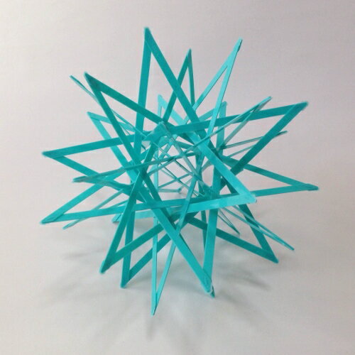 30本の棒を組み立てて,6つのペンタグラムからなる 黄金比の結晶体を組み立てるパズルです。 美しい星のカゴが出来上がります。 完成した星は,平たくつぶすことができ, わずかなショックでポンと立体形に戻ります。 パズルとしては上級者向けです。 「ブルー」と暗闇でうっすら光る「夜光」タイプの2種類あります。 組み立てがほとんどできている,ほぼ完成品です。 パーツをはずせば,自分で組立に挑戦することもできます。 日詰明男さん作。直径約16cm。 【注意!】 この商品は、たたんだ状態での長期保存は 変形する恐れがあるので、お届け後, すぐに開封できる場合にのみご注文ください。 商品は,「ほぼ完成品」ですが,変形を防ぐため, 6カ所だけ故意につなげられていません。 配送方法で「メール便」を選択可能です(1個まで)。