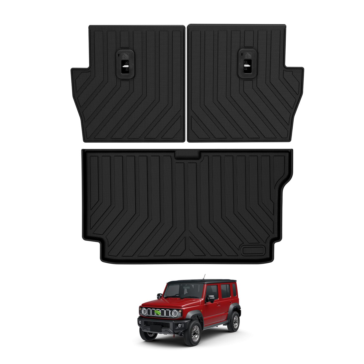 ・1.【適合車種】ジムニーノマド (JIMNY NOMADE)。型式:JC74W(5ドア) 。年式:2025年(令和7年)4月・現行。ご注意:形状、年式とモデルをご確認頂いた上、お買い求めください。※【セット内容】:バック+ラゲッジマットx3(合計:3PCSセット)。・2.【70度の柔らかさのTPE素材・フィット感UP!】70度の柔らかさのTPE素材を使用して、よりフィット感を高める!プラスチックとゴムの両方の優れた特性を兼ね備えており、プラスチックのように成形でき、常温ではゴムのように高い弾性を持っている、環境に優しく、幅広い用途に使用されています。・3.【3D立体構造・防水仕様】本製品は3D立体構造で、ホコリや汚れなどをマットの内に閉じ込め、床を常に清潔な状態を保つことができます。また、耐摩耗性と耐汚性にも大変優れて、お車の床を保護し、外での旅行にも最適です。防水仕様なので、汚れても水で簡単に洗うことができる、便利で楽です。サーフィンや海水浴・スキーなどのアウトドアシーンや部活や習い事の送り迎えなどで活躍します。アウトドアが好きな方にオススメ、ぜひ体験してみてください。・4.【車種専用設計】完全車種専用に設計されていることにより、トランクの細部に至るまでがっちりガードします。専用設計ならではのフィッテングを体感してください。・5.【取付簡単】ネジや両面テープを使わずに、簡単に装着と脱着ができ、到着したすぐに取付できます。※注意事項※:製品包装が折りたたみ式で梱包されているため、到着後にお湯やドライヤーなどで暖めれば元の状態に戻ります。