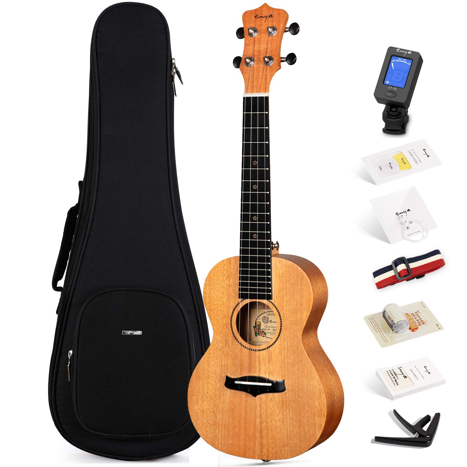 Enya コンサートウクレレEUC-25D BUマホガニー単板ウクレレ初心者セット23インチウクレレ収納バッグ,チューナー,ストラップ,スペア弦等付属品一式