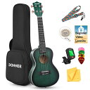 Donner ウクレレ コンサート 初心者セット 23インチ 上質木材 ポリッシュ仕上げ ソフトケースとチューナーなどアクセサリー6点セット グリーン DUC-200G