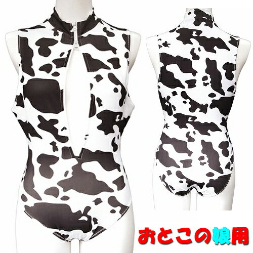 牛柄フロントファスナー競泳水着 カウ柄 おとこの娘用 コスチューム メンズ TMT-1783
