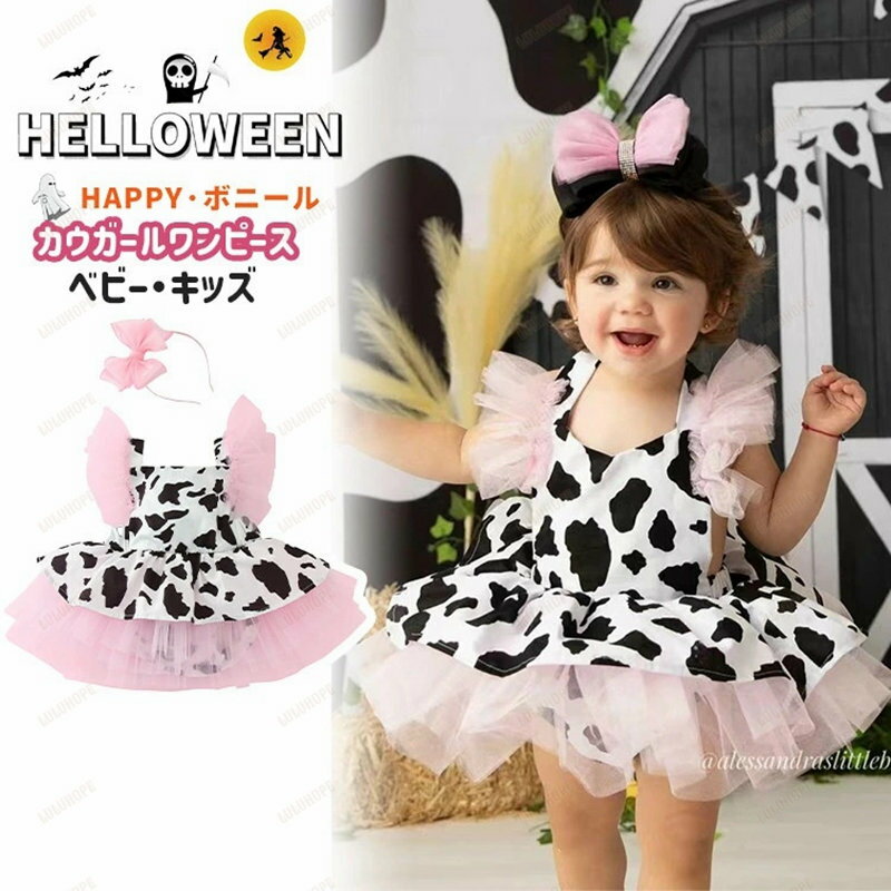 カウガール ハロウィン コスプレ 衣装 子供 チュールワンピース ロンパース ジャンプスーツ tutu ピンク カウ柄 リボン カチューシャ コスチューム キッズ ドレス 女の子 ベビー 赤ちゃん おしゃれ 可愛い 仮装 姫様 撮影 幼稚園 イベント 万聖節 パーティー 仮装大会 演出