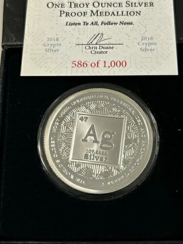2018年 プルーフ シルバーシールド クリプト AG メダリオン(箱・鑑定書付き)