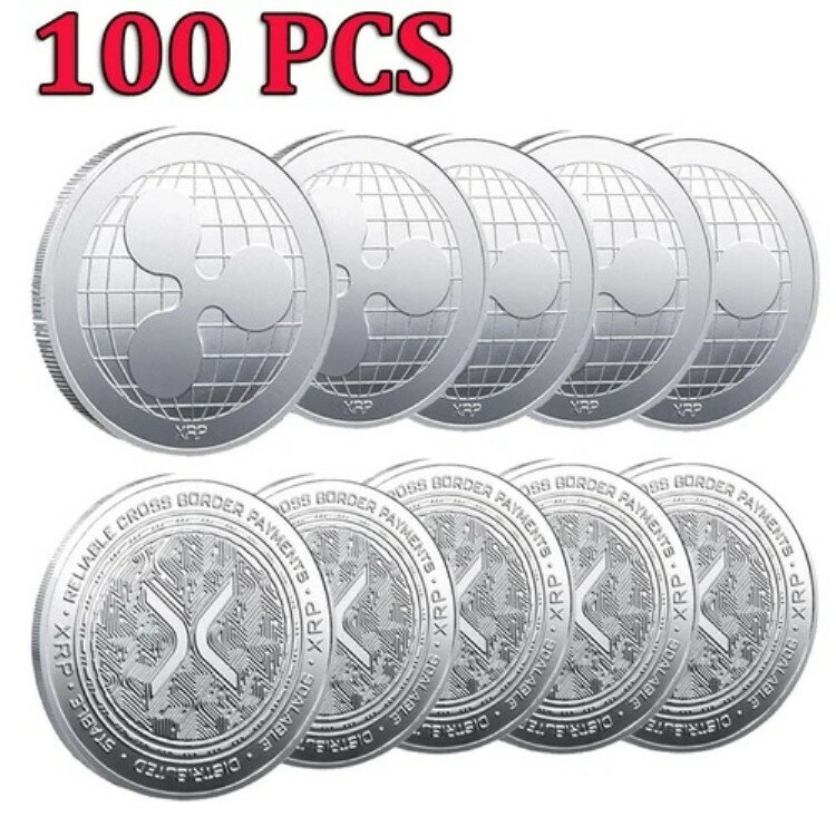 100個 シルバーメッキメタル XRP メダル 物理暗号チャレンジコイン リップルコイン