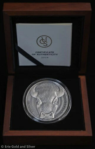 2024年 ユナイテッド・クリプト・ステイツ バイナリー・ブル 2オンス シルバー アンティーク仕上げコイン OGP