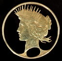 ピースシルバードルカットアウトコイン、自由の女神、金メッキ
