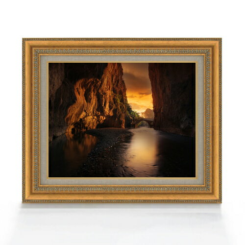【油絵 直筆仕上げ】風光なるキャニオン F6サイズ 額入り 【キャンバス・アクリル/額入り】 油彩 風景画 オリジナルインテリア絵画 風水画 558×467mm 複製画 送料無料