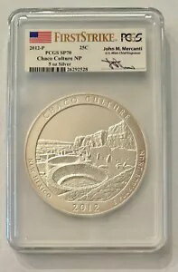 2012-P メルカンティ ファースト ストライク PCGS SP70 チャコ キャニオン NP 5 オンス シルバー ATB ポップ 100