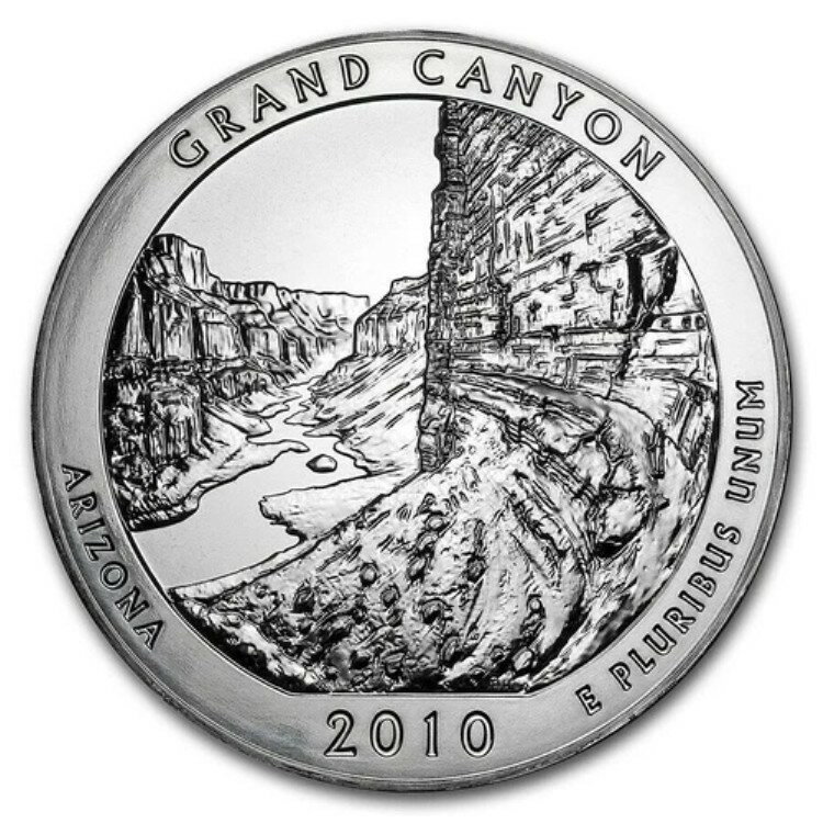 2010 USA アメリカ 美しい 5 オンス ファイン シルバー コイン、グランド キャニオン 早期リリース