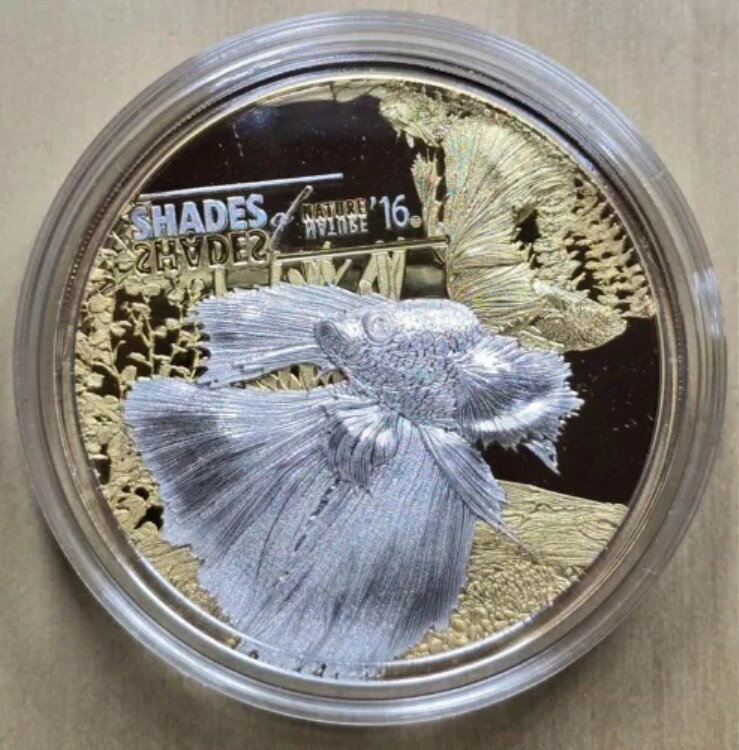 クック・イズ・シェイズ・オン・ネイチャー 2016年 5ドル シャム・ファイティング・フィッシュ .999 シルバー PCGS PR-69