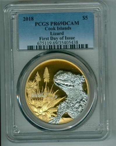 クック諸島 シェーズ・オン・ネイチャー 2018年 5ドル トカゲ .999 シルバー PCGS PR-69DCAM